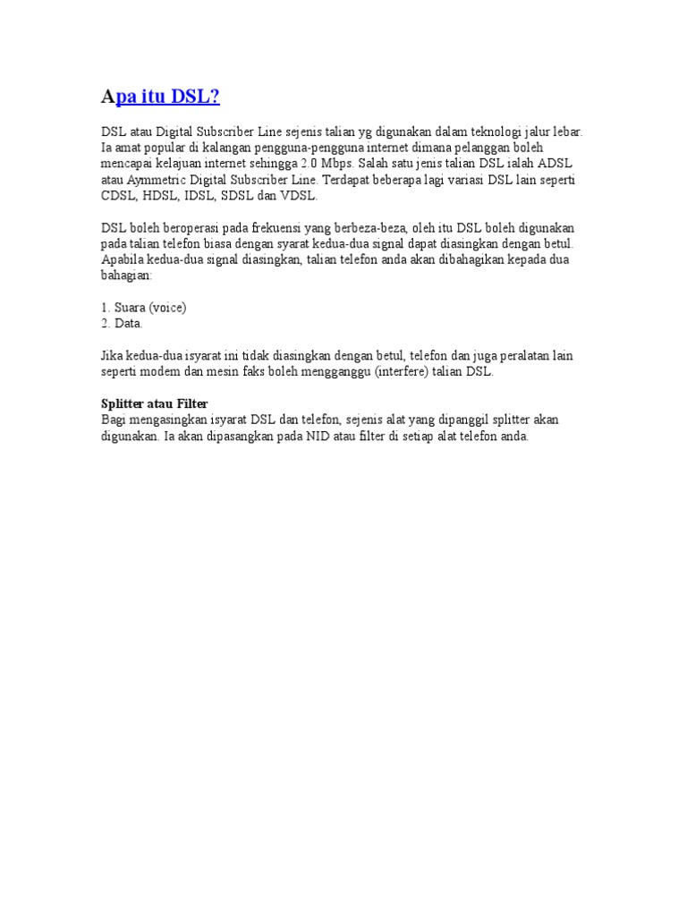 Dsl Digital Subscriber Line Pada Teknologi