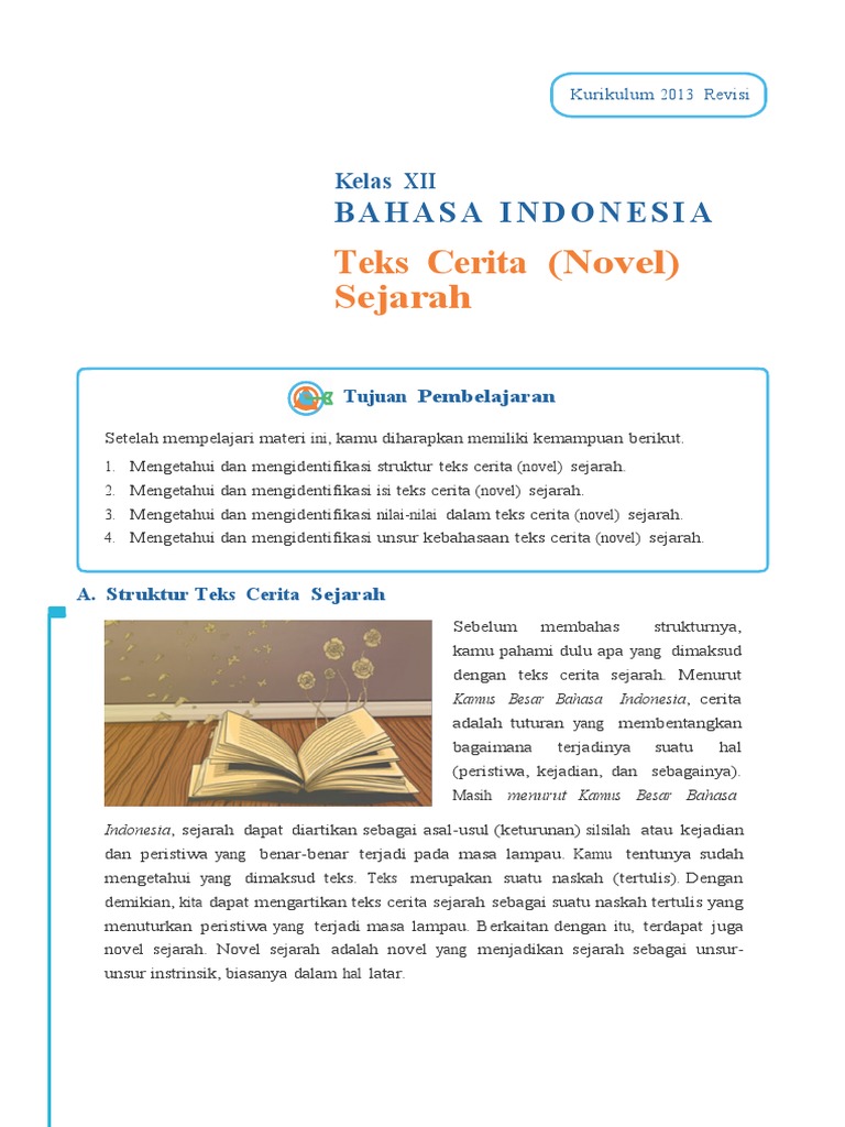 Teks cerita novel sejarah seperti cerita lainnya novel cerpen dll termasuk dalam kategori cerita ulang. Definisi Teks Cerita Sejarah. Peristiwa itu benar-benar terjadi sejarah atau berupa khayalan seperti novel roman dan sejenisnya.